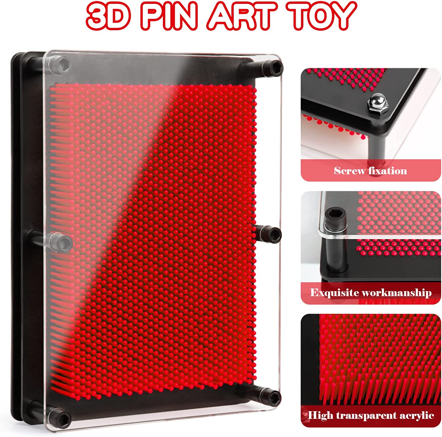 【3D PIN TOY】Pin art sensory toy is ideal for kids boys girls, you can press an object into the wall of this pin toy imperssion to leave an impressional profile, like Batman toy statue, dinosaur toys, your handprint or facial contour and so on. Enjsd 3d pin art toy will create inimaginable 3d sculptures, inspiring children's boundless creativity and imagination.