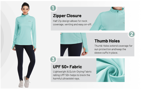 ★Women's half zipper sunscreen clothing is easy to wear or take off.Multiple color choices.