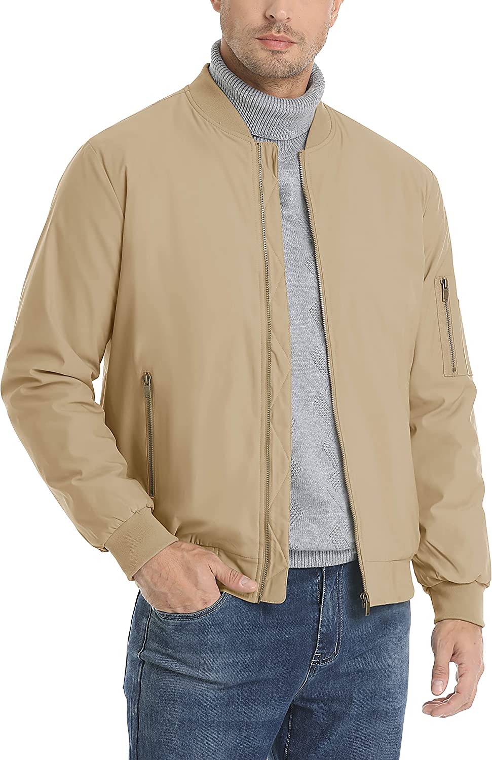 MAGCOMSEN Men's Bomber Jacket Fall Winter Warm Jackets Full Zip Padded Coats Windproof Thick Jackets Outwear Zipper Pockets