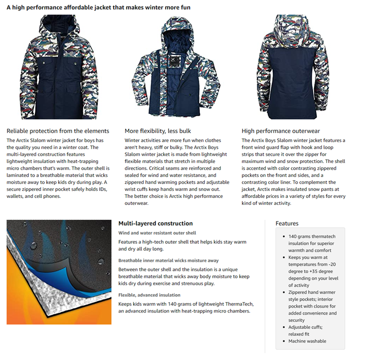 • 140 grams ThermaTech Insulation for superior warmth and comfort