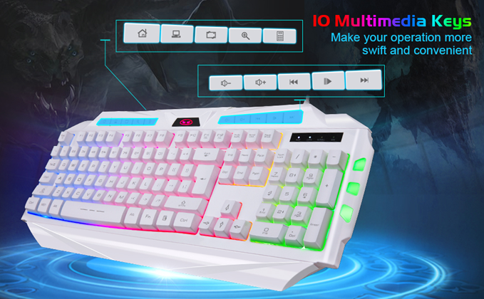 RAINBOW BACKLIT-Rainbow backlit gaming keyboard&mouse, seven colors breathing backlit mouse. Ergonomic design for wired keyboard and mouse, comfortable to operate.
