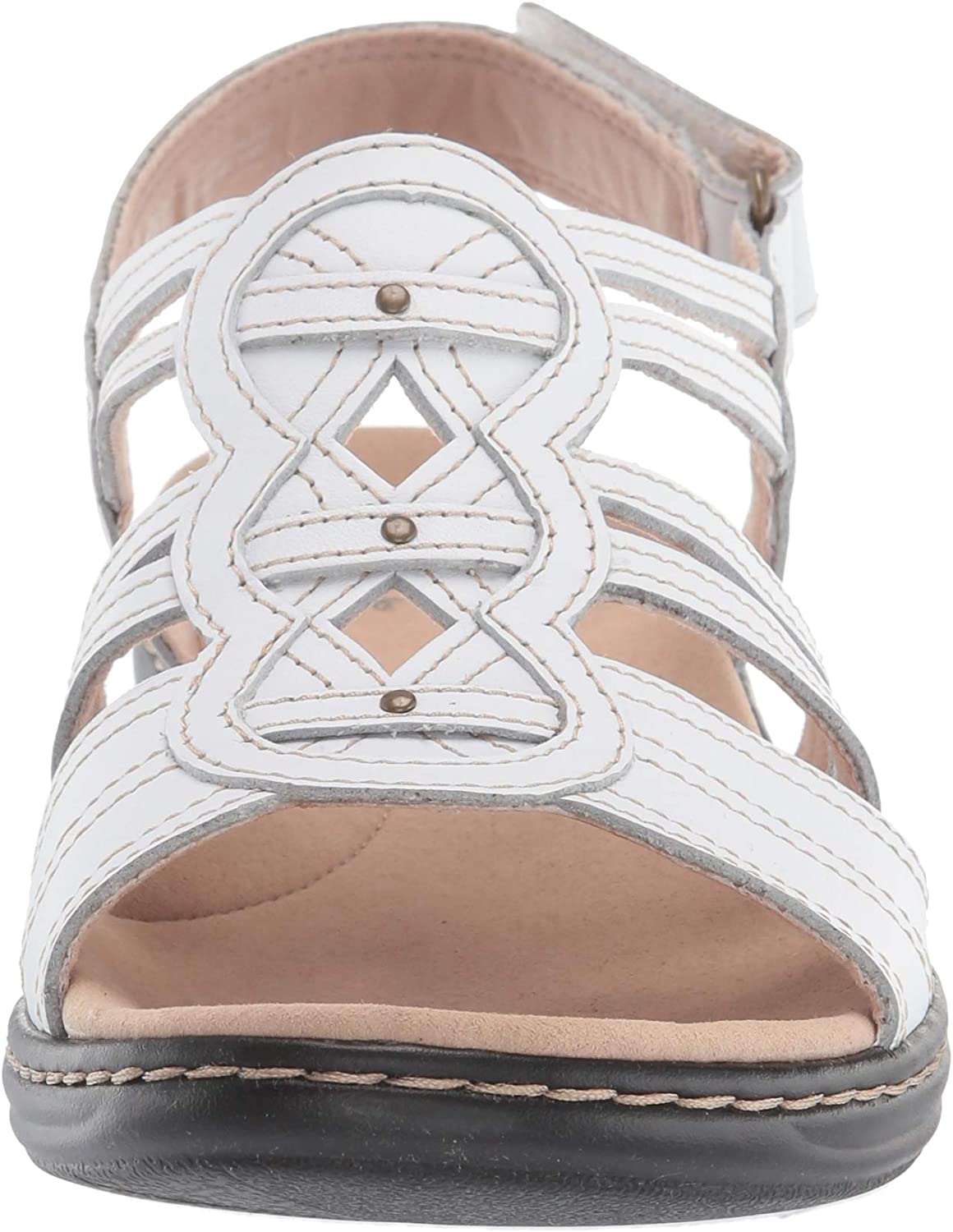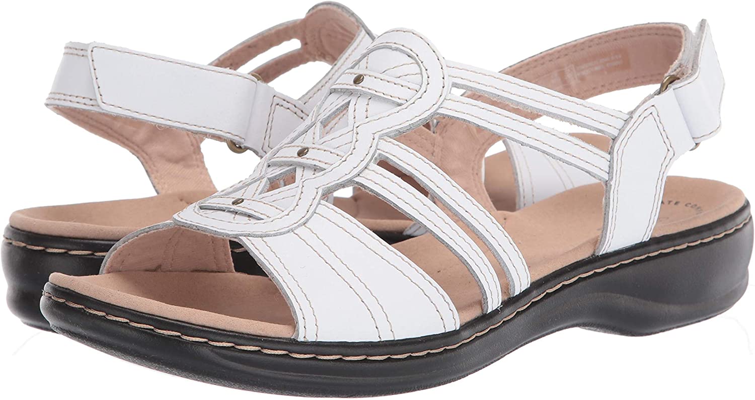 The leisa janna by Clarks collection is a versatile sandal crafted in full grain leather and packed with comfort features. An ortholite footbed, cushion soft technology, and a durable eva outsole ensure serious support and impact-absorption.