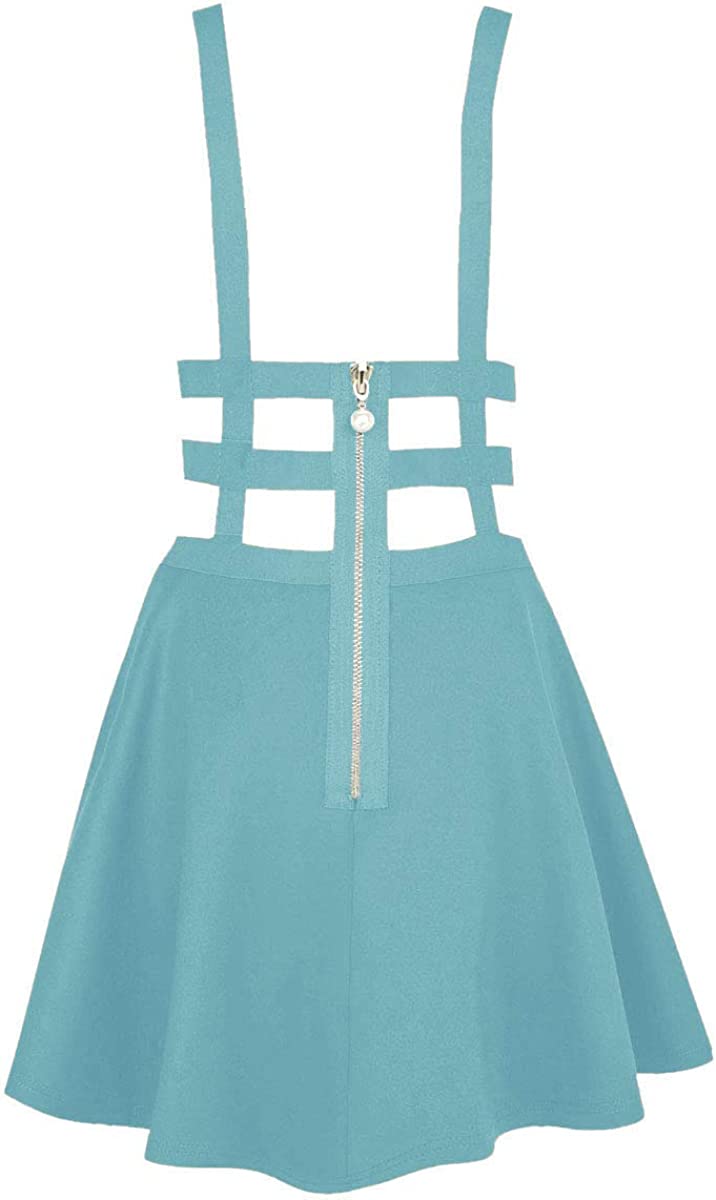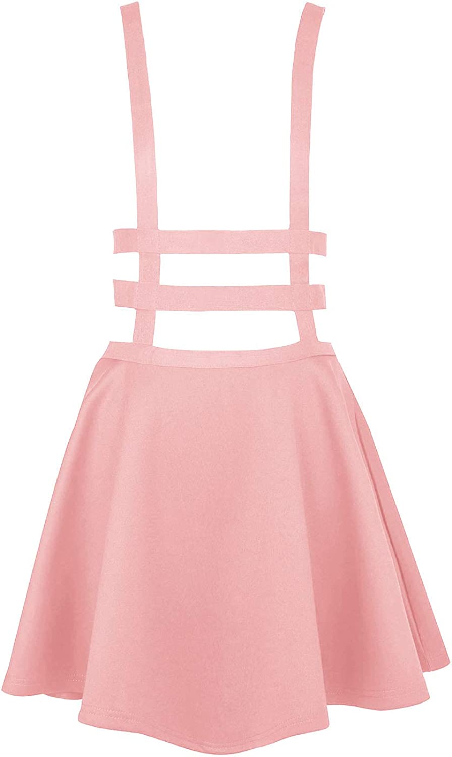 EXCHIC Women's Braces Skirt Pleated A-Line Suspender Mini Skirt