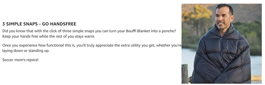 <b>WEARABLE</b> - Premium snaps convert your blanket into a poncho, freeing your hands for tailgating, chatting around the campfire, or cozying up with your favorite book.