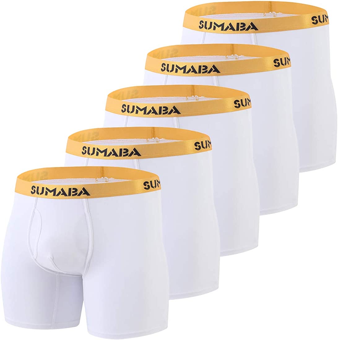 SUMABA Long Leg Men Underwear Boxer Briefs Fly with Pouch No Ride Up Bamboo Underpants for Men Breathable