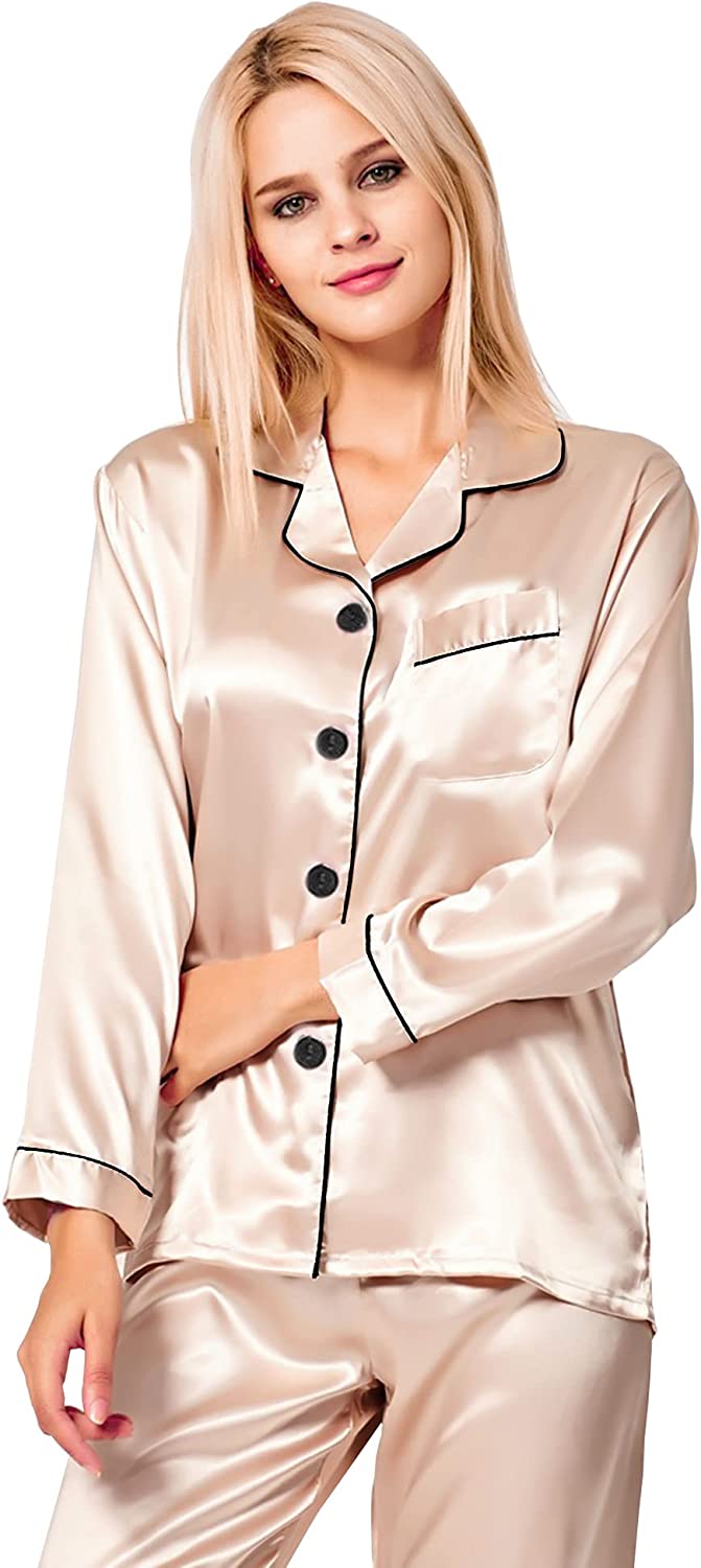 Gift: Women's silk pajamas for women is made of high quality imitation silk fabric, it is soft and natural shiny. Great Choice For your Wife, Girlfriend, Mother, Sister and Doughter as a Birthday gift and Great Present for New Year, Valentine's Day, Christmas Day, Bridal Party Gifts, Honeymoon Vacation or other Festivals or Anniversaries.