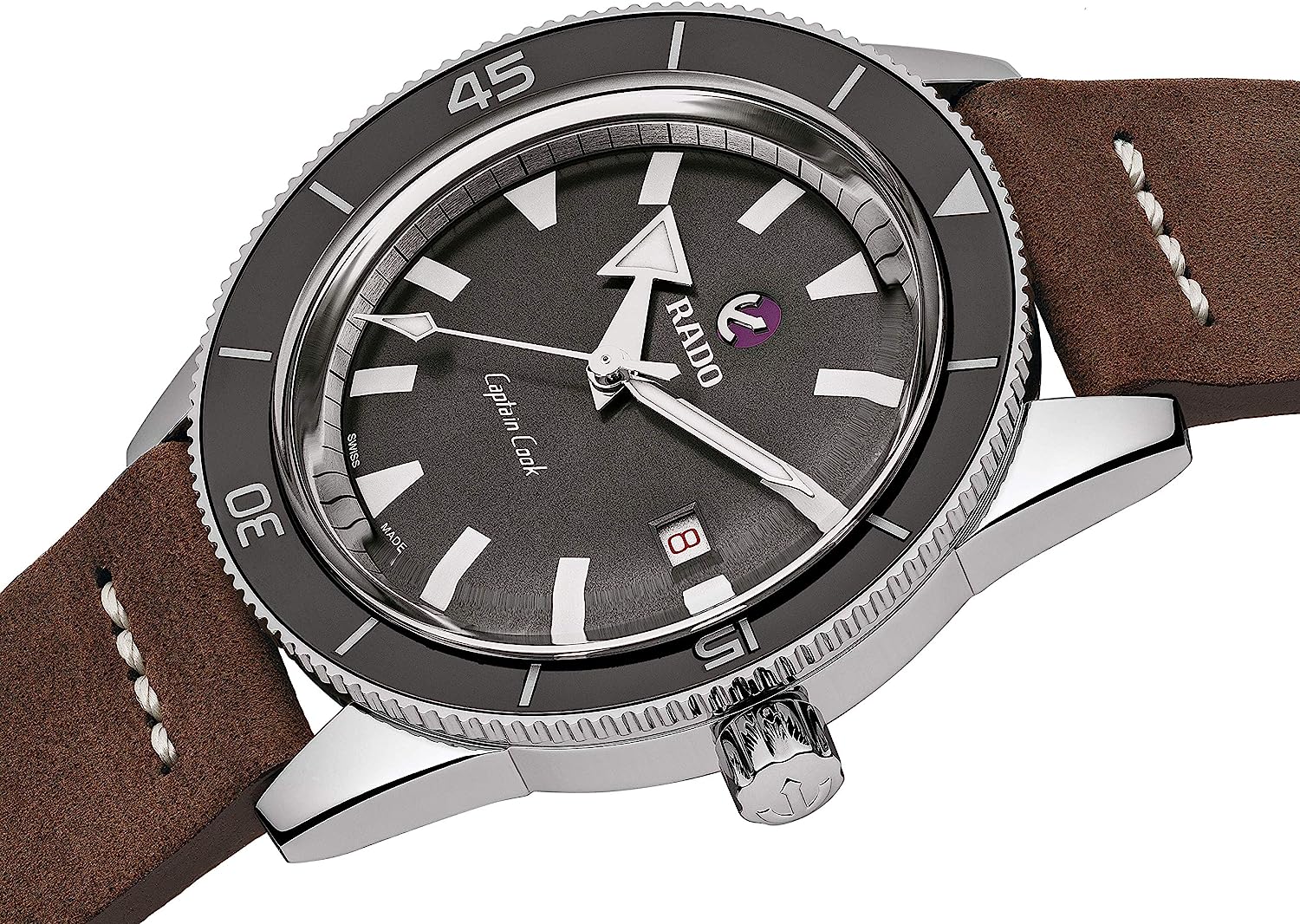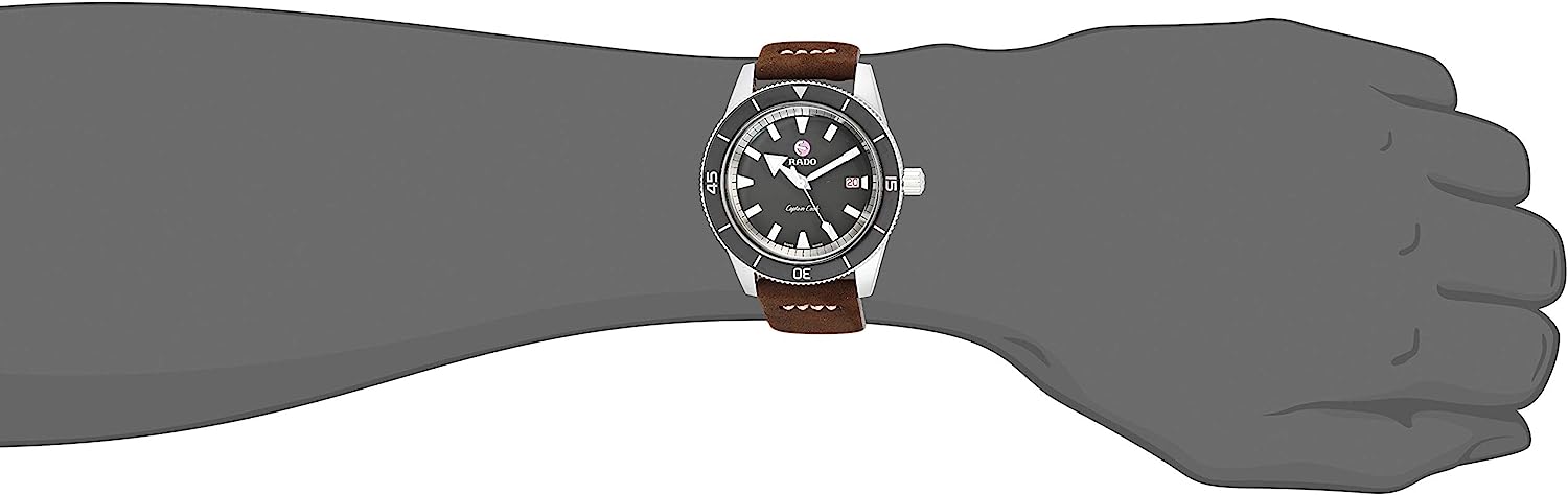 Rado Men's Captain Cook Leather Swiss Automatic Watch, Gray