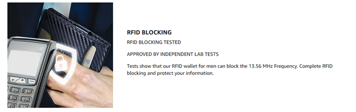 • RFID BLOCKING TESTED & APPROVED BY INDEPENDENT LAB TESTS - Tests show that our RFID wallet for men can block the 13.56 MHz Frequency. Complete RFID blocking and protect your information