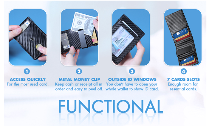 • ULTRA SLIM & MULTIFUNCTIONAL - Best slim wallet that measures only 3.9"x2.76"x0.34". A men’s wallet with enough room for essential cards and cash without being bulky. Front pocket for the most used cards for quick access. Outside pocket for ID cards so you don’t have to open the whole wallet