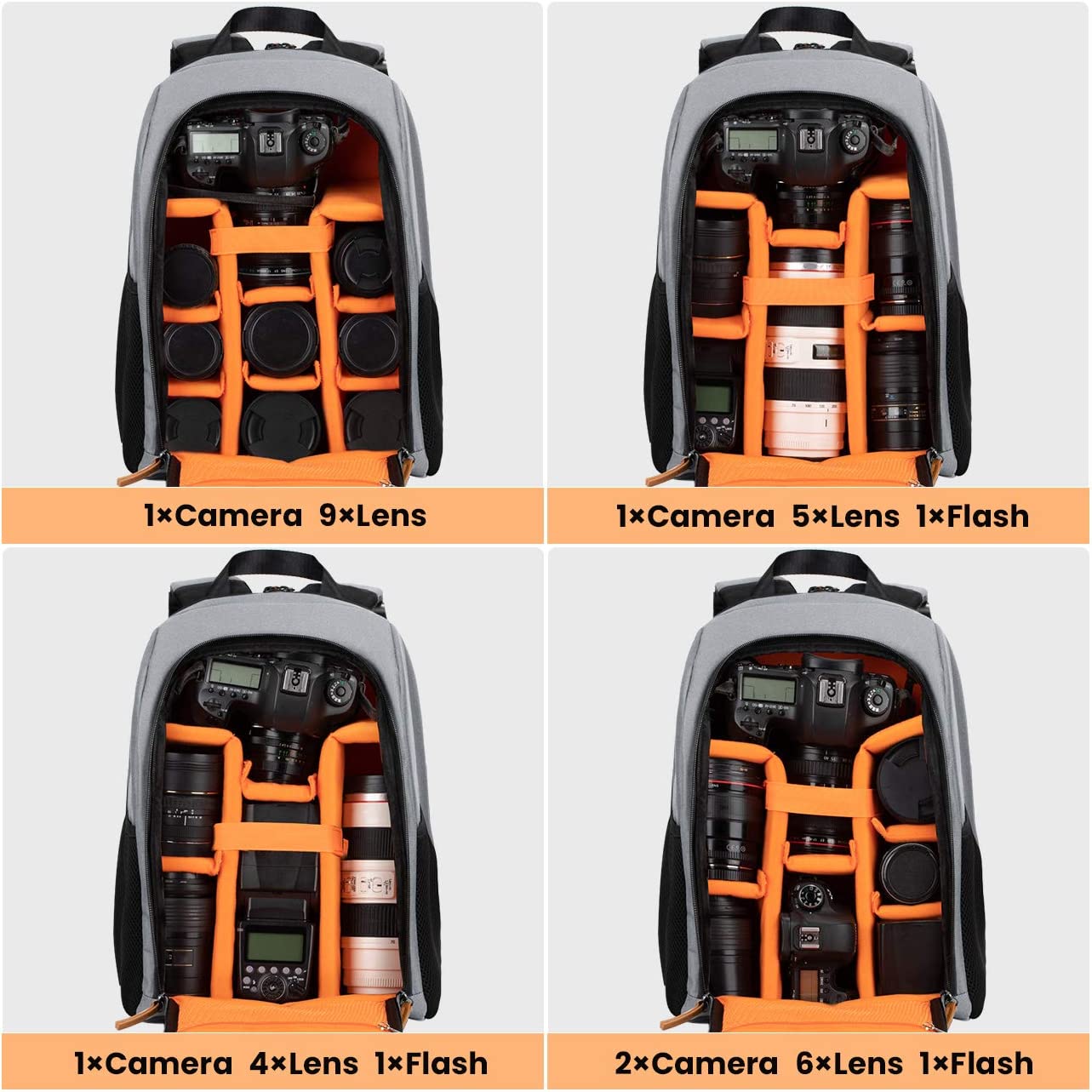 Total of 8 padded custom dividers correctly prevents your gear from getting damaged by storing each in its own padded compartment. Thickened protective pad, shockproof and not deformed. Awesome space and protection for your camera gears.