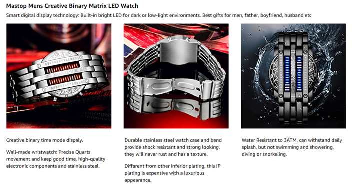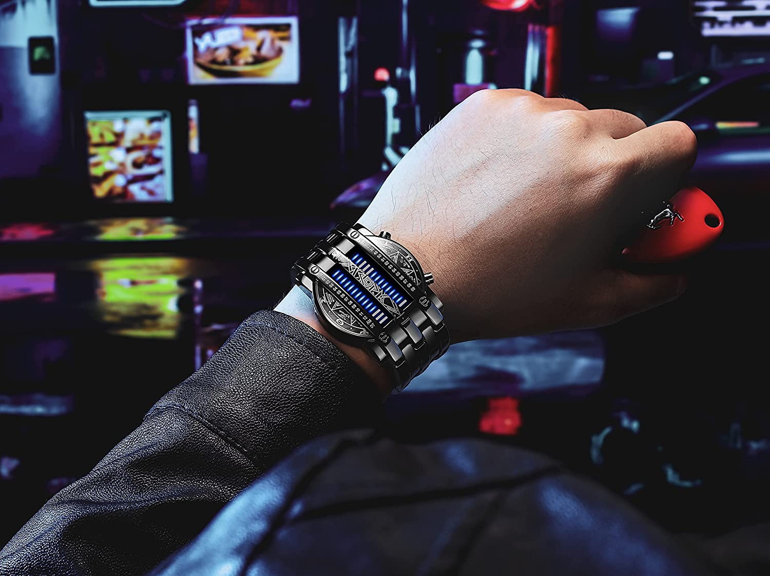 • Fashionable design: Creative binary time mode dispaly, double open stainless steel buckles, wear more convenient and solid, best gifts for men, father, boyfriend, husband etc