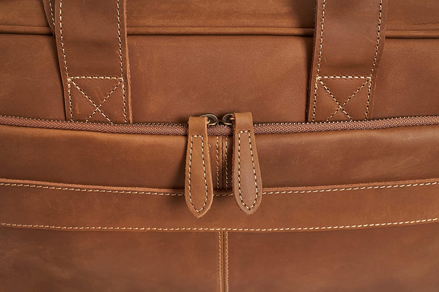 • QUALITY CRAFTSMANSHIP - The executive leather briefcase for men is constructed with fine materials and expert craftsmanship. YKK zippers, solid antique brass hardware, precision stitching with heavy bonded thread, and a superb upgraded internal lining design. An office bag for men that will withstand many years of commuting.