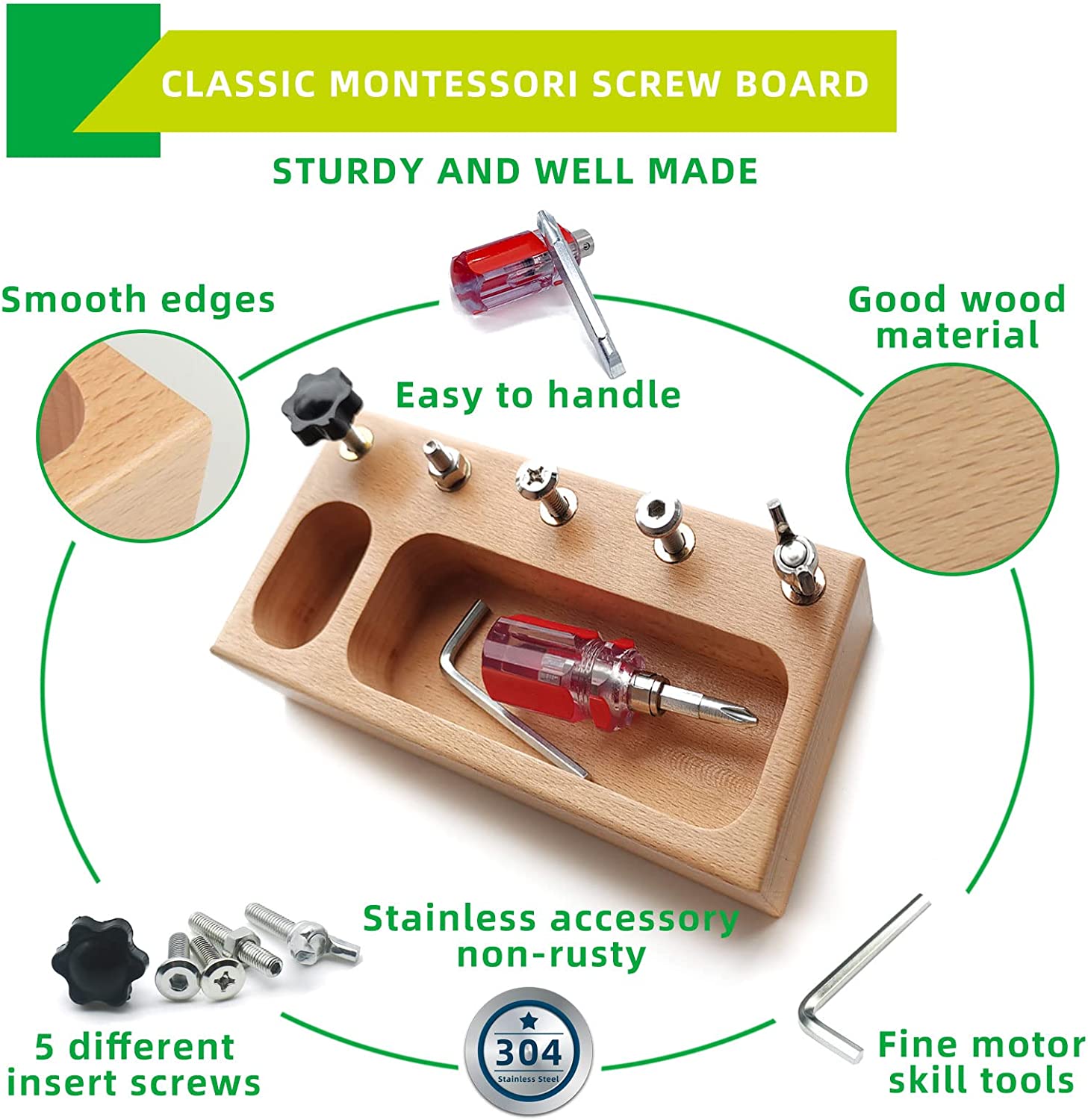 • The Montessori Materials Screw Board Great Gift for Toddlers and Older Children To Provide A Sensory Experience for A Wide Range of Developmental Levels.montessori screwdriver board set