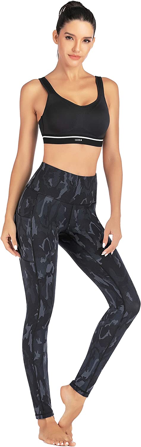 IUGA Leggings with Pockets for Women High Waisted Printed Yoga Pants for Women Workout Leggings for Women with Side Pockets