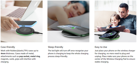 - ▶[SAFER AND EASIER TO USE]: Exclusive Multifunctional Intelligent Protect Technology provides temperature control, surge protection, short-circuit prevention. Besides that, this wireless chargers is made of ABS Material which is fire-resistant, and has a UL Certificate, you can purchase it at assurance. Double guarantee and dual safety provide you safety experience. To get better experience, we would like you to take off the phone case.
