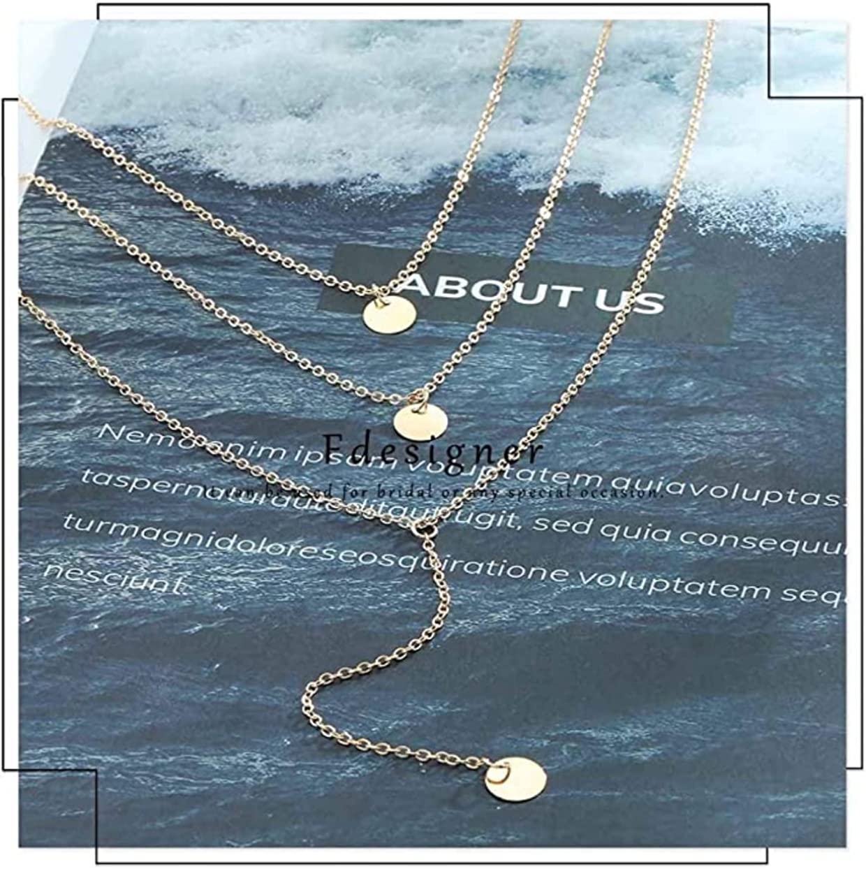 Fdesigner Fashion Layered Long Necklace Coin Pendant Necklaces Chain Charm Necklace Jewelry for Women and Girls (Gold)