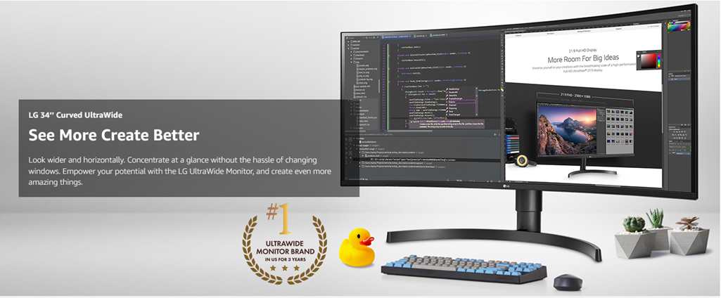 The LG 34WN80C 21: 9 Ultra Wide curved IPS monitor is the ideal large screen monitor for work and play. The graceful curve of the monitor helps create an immersive viewing experience. Combine the elegant design with Ultra Wide Quad Definition (WQHD 3440 x 1440) picture quality and your movies, games and creative passions will seem to come to life. And when it's time multi task, the 34 inch screen, 21: 9 aspect ratio and the Screen Split 2. 0 feature, it makes viewing and working with multiple documents and sources easy. For creative professionals sRGB over 99 percent color accuracy and HDR10 compatibility will help make this curved monitor a must have to maximize creative talents. Contrast Ratio: 700:1 (Min.), 1000:1 (Typ.), Surface Treatment: Anti Glare, 3H; Pixel Pitch(mm): 0.2325 x 0.2325 millimeter, Color Depth(Number of Colors): 1.07B, Response Time (GTG): 5ms (GtG at Faster); Viewing Angle: 178°(R/L), 178°(U/D) Power Consumption (Max.): 140W; Wall Mount Size (mm) : 100 x 100 millimeter.
