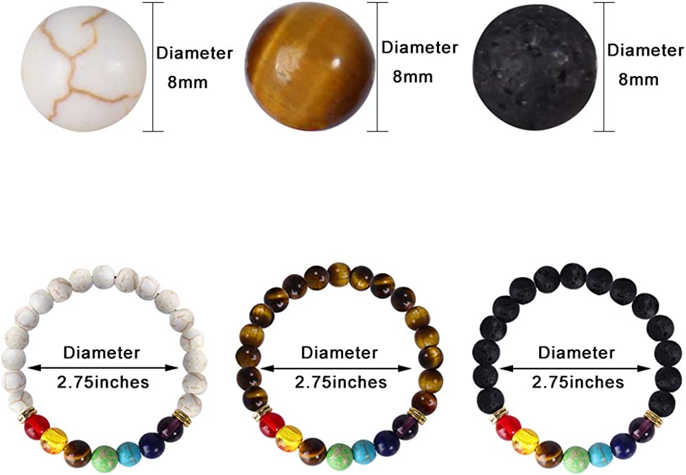 • SIZE - The diameter of each lava stone and chakra bead is 8mm/0.31 inch. The diameter of the elastic healing bracelets for women is 7cm / 2.75 inches. These elastic mens beaded bracelets is adjustable and fits most women and men.