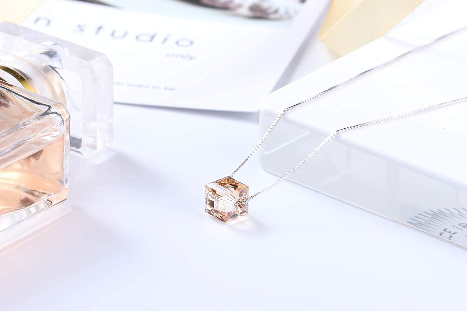 UNIQUE DESIGN This simple but elegant cubic pendant was made of Champagne Gold crystal which sparkles all the time by refracting light from different angles. Champagne Gold is often used with Crystals.The ability as an amulet will increase by using it with crystals.