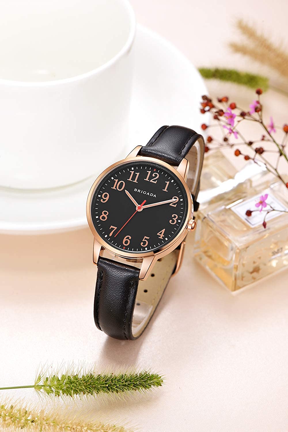BRIGADA Women's Watch Elegant Watch for Women Leather Band Ladies Watch for Women Waterproof