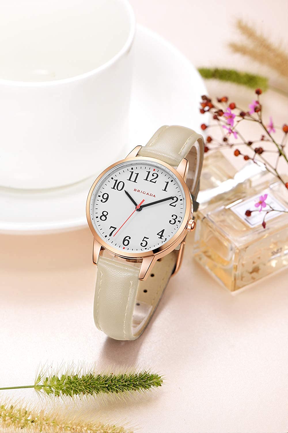 BRIGADA Women's Watch Elegant Watch for Women Leather Band Ladies Watch for Women Waterproof