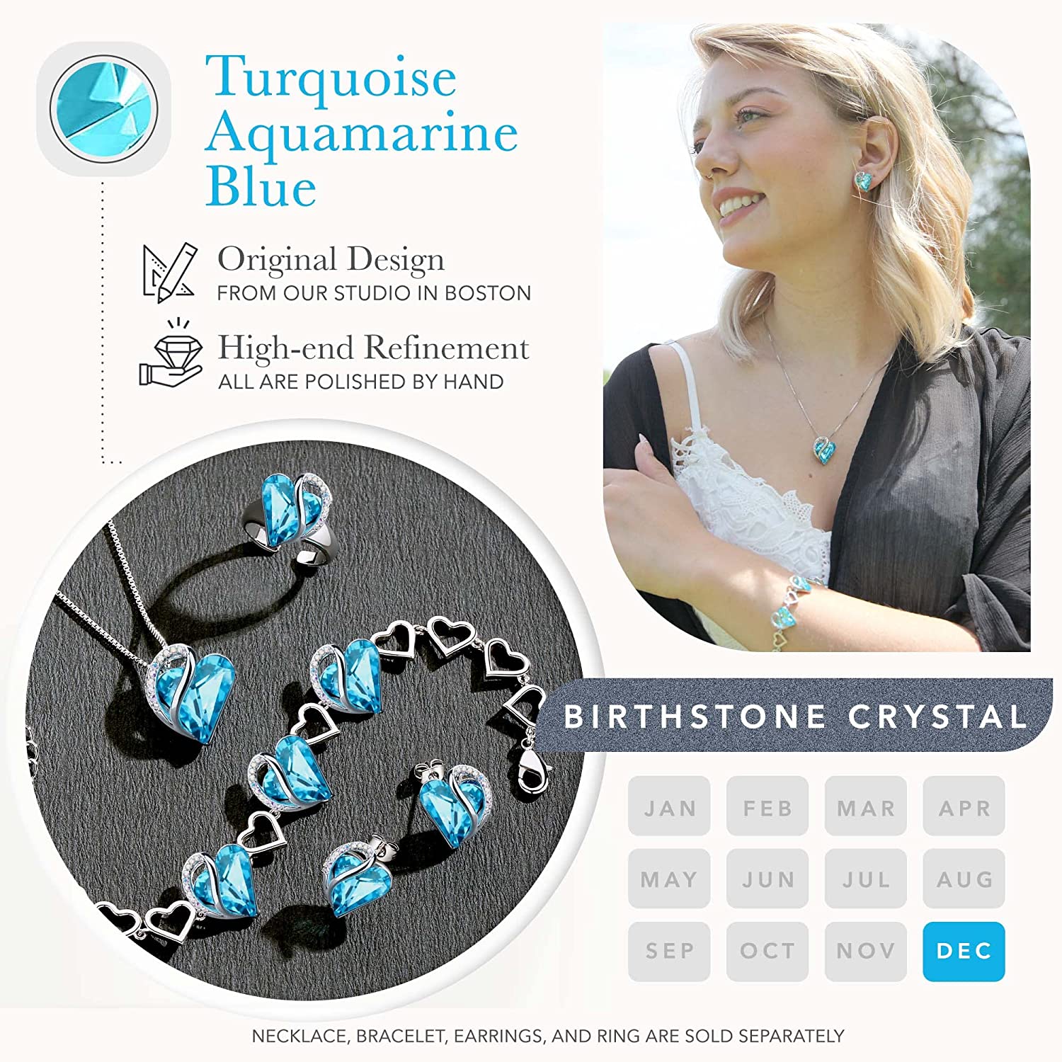 • Delicate Fashion Jewelry Gift that Fits - This woman’s necklace is adorned with a 0.75 x 0.88-inch turquoise aquamarine blue birthstone crystal for December. They are rhodium plated and designed with an 18-inch chain plus 2-inch extender, and a lobster claw clasp.