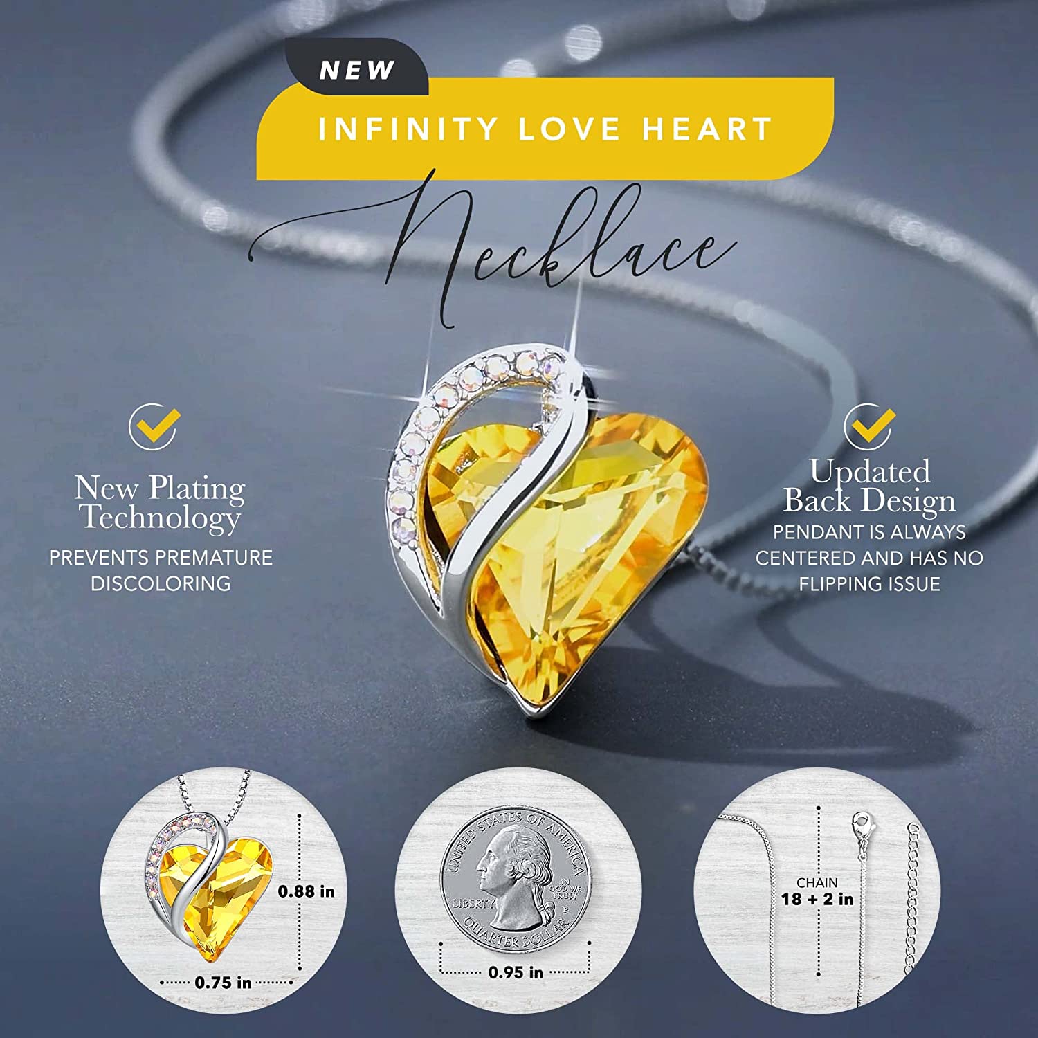 Leafael Women’s Silver Plated Infinity Love Heart Pendant Necklace with Birthstone Crystals, Jewelry Gifts for Her, 18 + 2 inch Chain, Anniversary Birthday Mother's Necklaces for Wife Mom Girlfriend