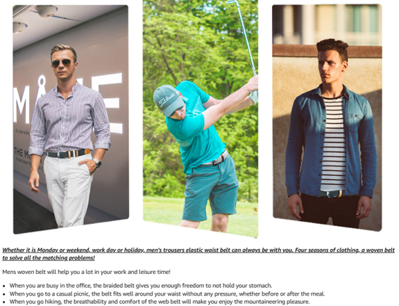 • Q: What material is used for the web belt? A: The mens belt is made of stretchy elastic fabric, the loop and the belt end is made of PU leather. Buckle is heavy weight and attractive, used nickel-alloy metal. The seller give each elastic belt an extra belt loop as a small gift,which you can use it to hold the extra strap in place.
