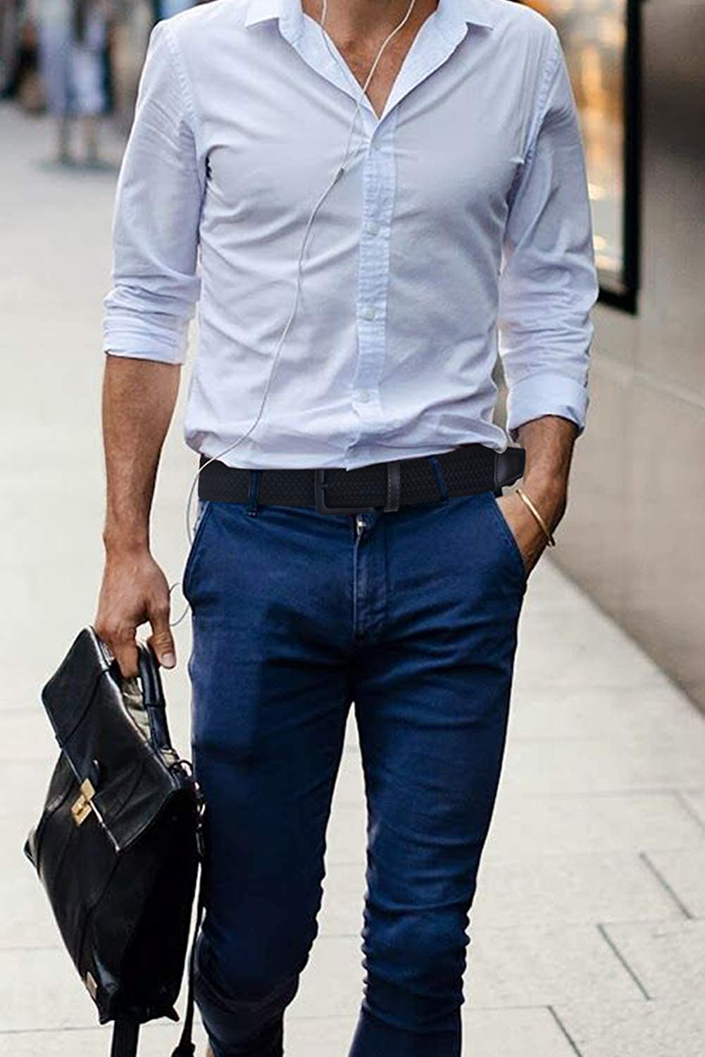 Q: Will this elastic belt be too tight to be uncomfortable? A: Of course not. The tightly braided web belt is heavy and thick for strength and comfort. With this simple pin buckle and elasticated design, you can fix the firmly at any length. Essential accessory fits in well with any types of jeans, trouser and pants.