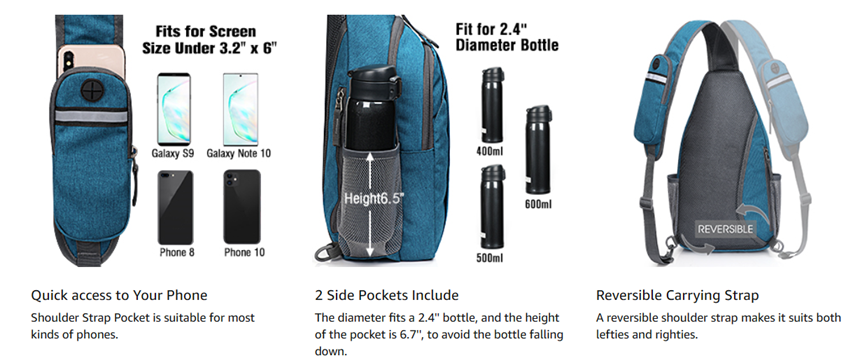 Multipurpose Daypack: Adjustable type strap fit for the child also adult. Can be used as messenger bag/family weekend trip sling bag: black color for Dad, blue color for Mum and the green color for kids/shoulder bag/crossbody backpack / casual daypack/sling bag/chest bag/travel bag/working or business bag, suitable for office, school, outdoor, business and other occasions. 100% SATISFACTION GUARANTEE WARRANTY