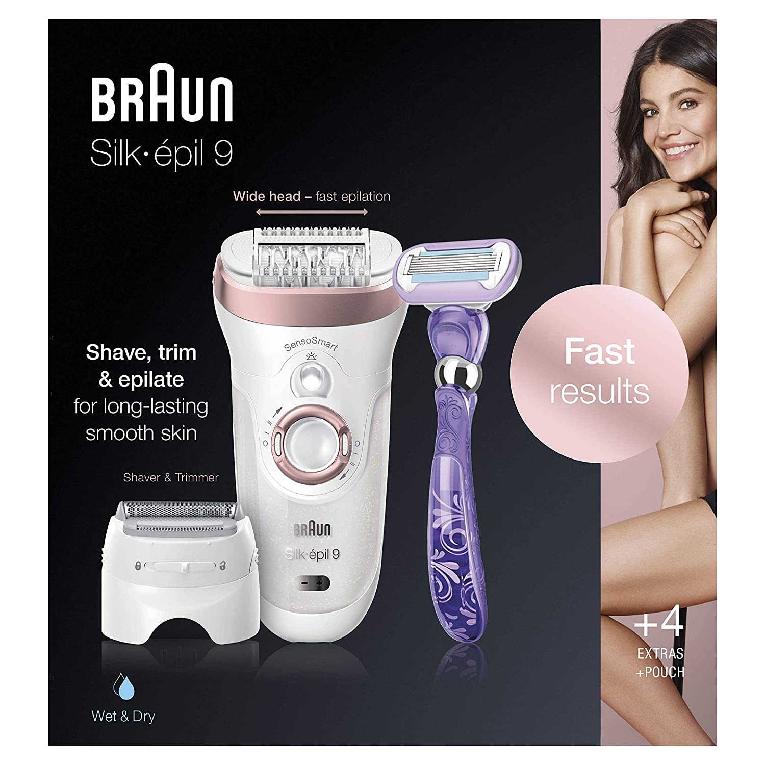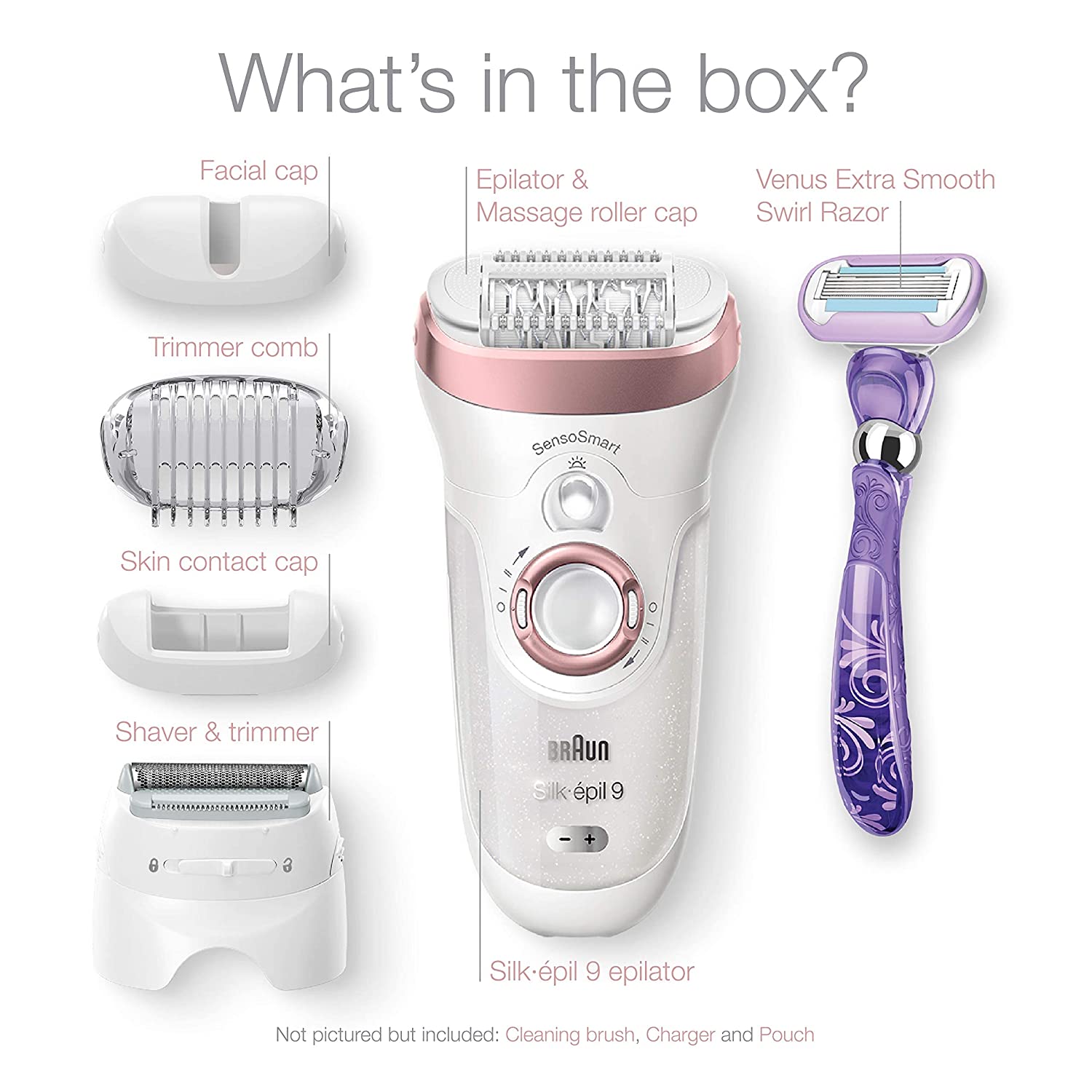 Braun Epilator Silk-épil 9 9-870, Facial Hair Removal for Women, Hair Removal Device, Wet & Dry, Women Shaver & Trimmer, Cordless, Rechargeable, with Venus Extra Smooth Razor