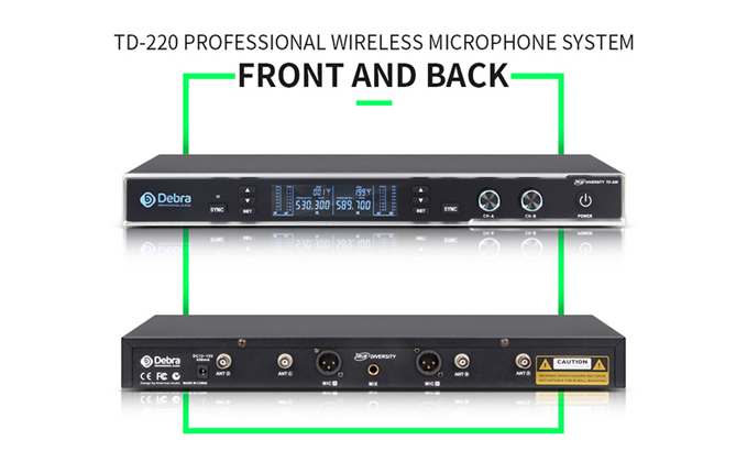 - Debra Audio TD-220 is true diversity dual microphone four receive and antenna, effectively overcome the frequency of dead ends, UHF band, PLL digital frequency synthesis. The Optimal distance arrived 850 Foot operation range.