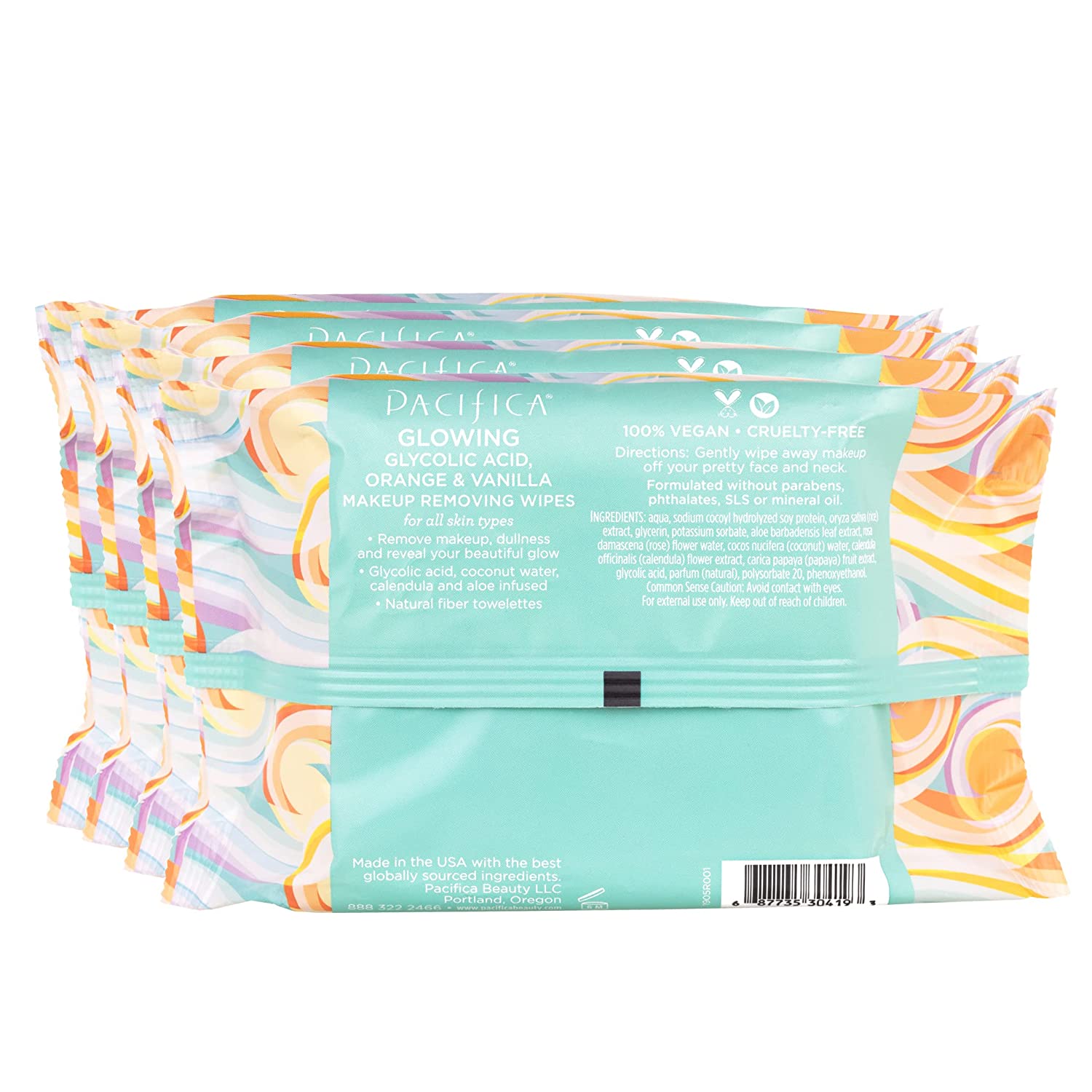 Pacifica Beauty - Glowing Makeup Remover Wipes - Glycolic Acid, Coconut Water, Aloe Infused - Daily Cleansing + Exfoliating - Clean Skin Care - Plant Fiber Facial Towelettes - Vegan
