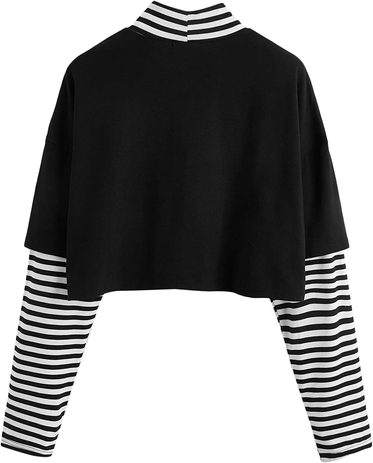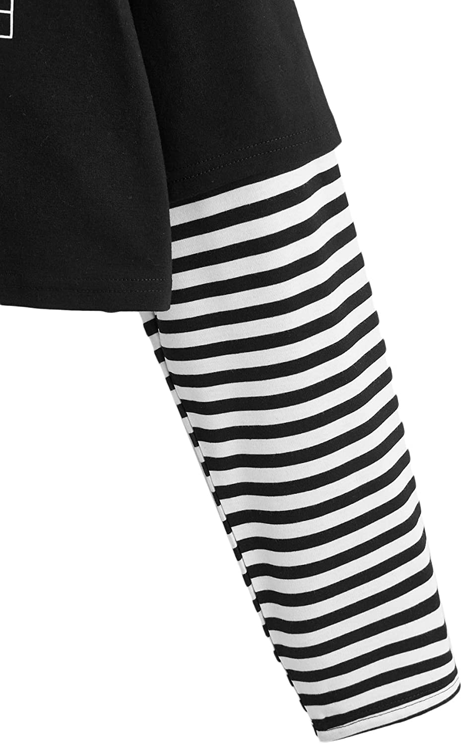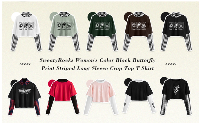 SweatyRocks Women's Color Block Butterfly Print Striped Long Sleeve Crop Top T Shirt