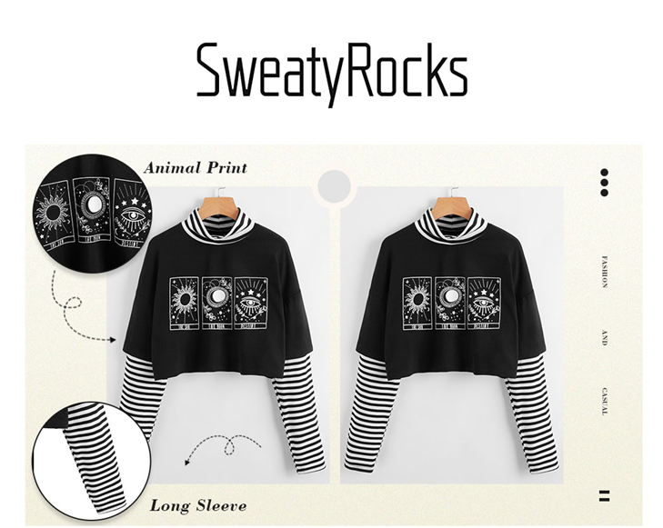 Striped round neck, long sleeve, cropped length, animal print, colorblock, casual t shirts for women