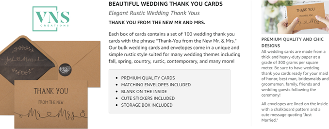 - ? THANK YOU FROM THE NEW MR AND MRS: Each box of cards contains a set of 100 wedding thank you cards with the phrase “Thank-You from the New Mr. & Mrs." Our bulk wedding cards and envelopes come in a unique and simple rustic style suited for many wedding themes including fall, spring, country, rustic, contemporary, and many more!