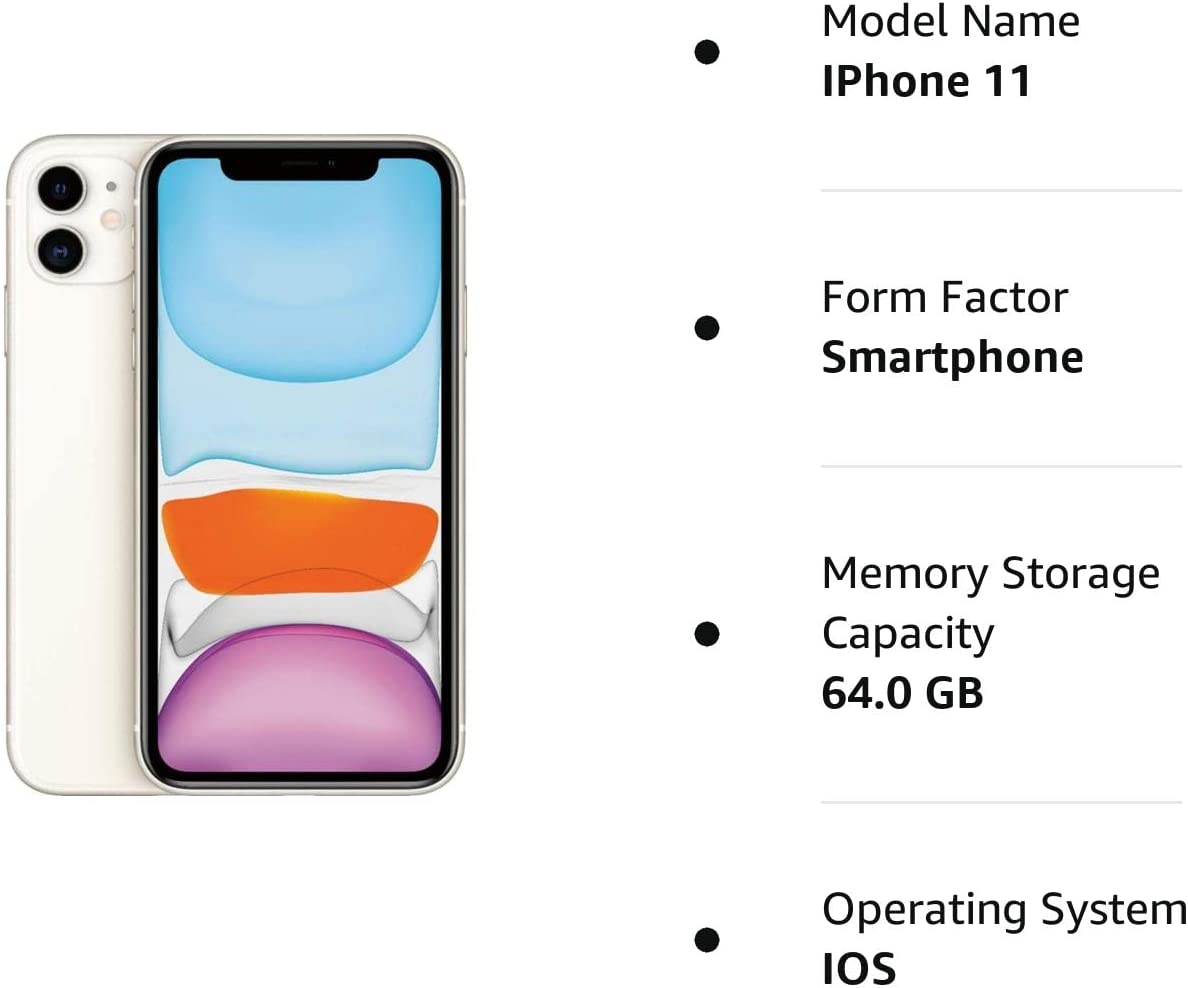 • Apple iPhone 11 64GB - Unlocked - 6.1-inch - White (Renewed)