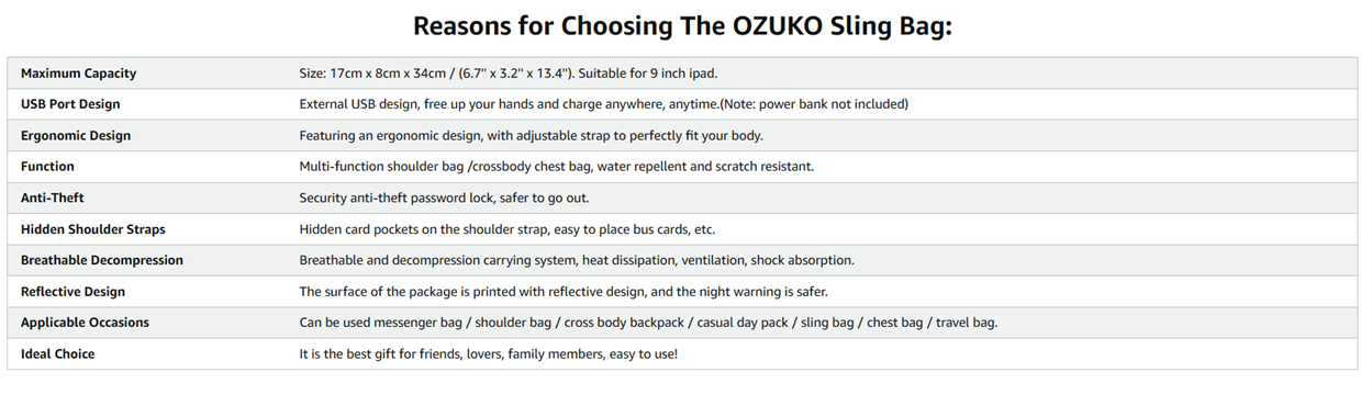 ✔ MULTI-FUNCTIONAL: Stylish, Unisex and Effective. Can be used messenger bag / shoulder bag / cross body backpack / casual day pack / sling bag / chest bag / travel bag / working or business bag, suitable for office, school, outdoor, business and other occasions.