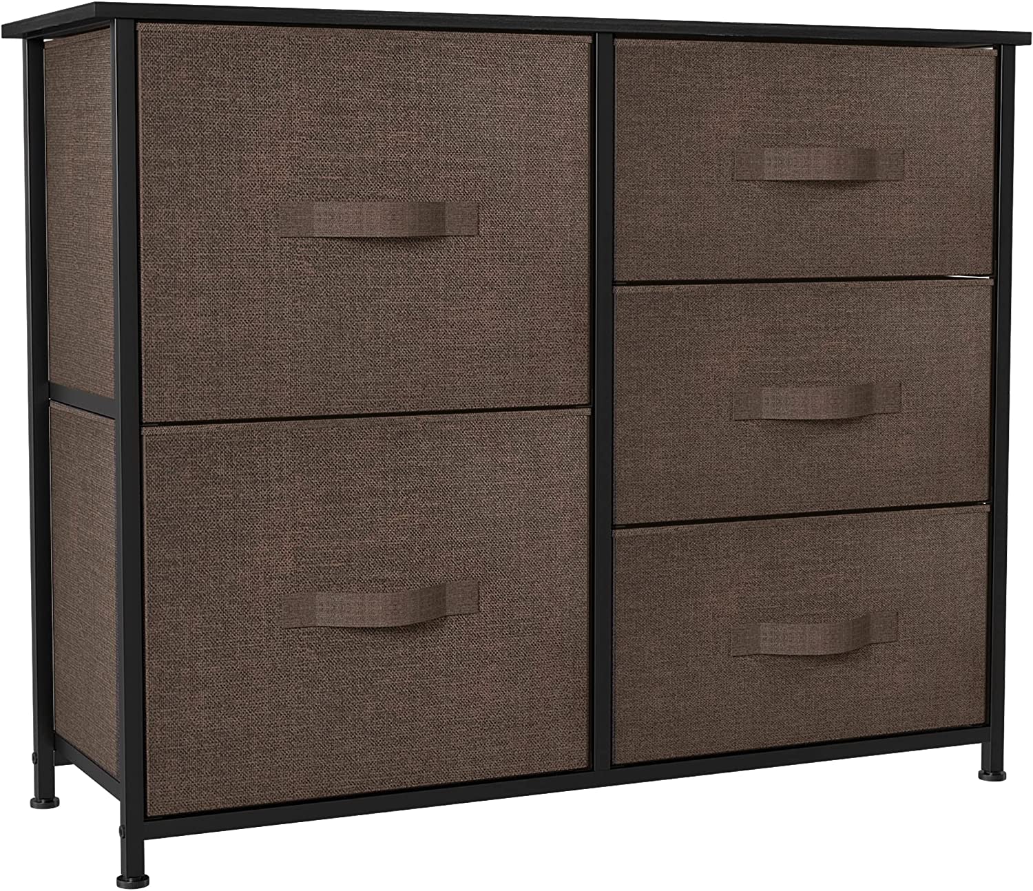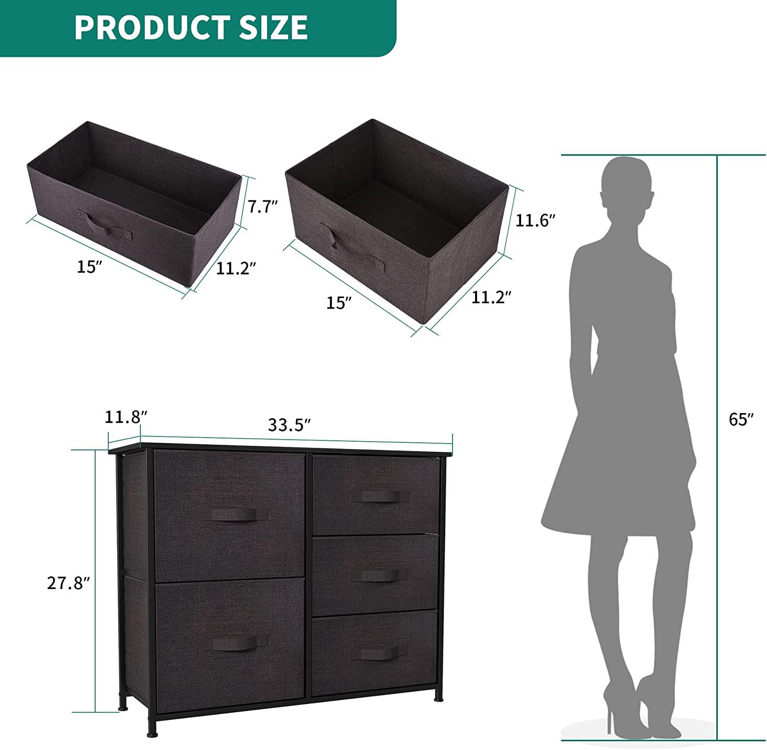• LARGE CAPACITY- 5 drawers in different sizes provide multiple storage options and ample room to make your living space neat and tidy; Overall dimensions: 33.5" L x 11.8" W x 27.8" H.Drawer dimensions: 15" L x 11.2" W x 11.6" H / 15" L x 11.2" W x 7.7" H.