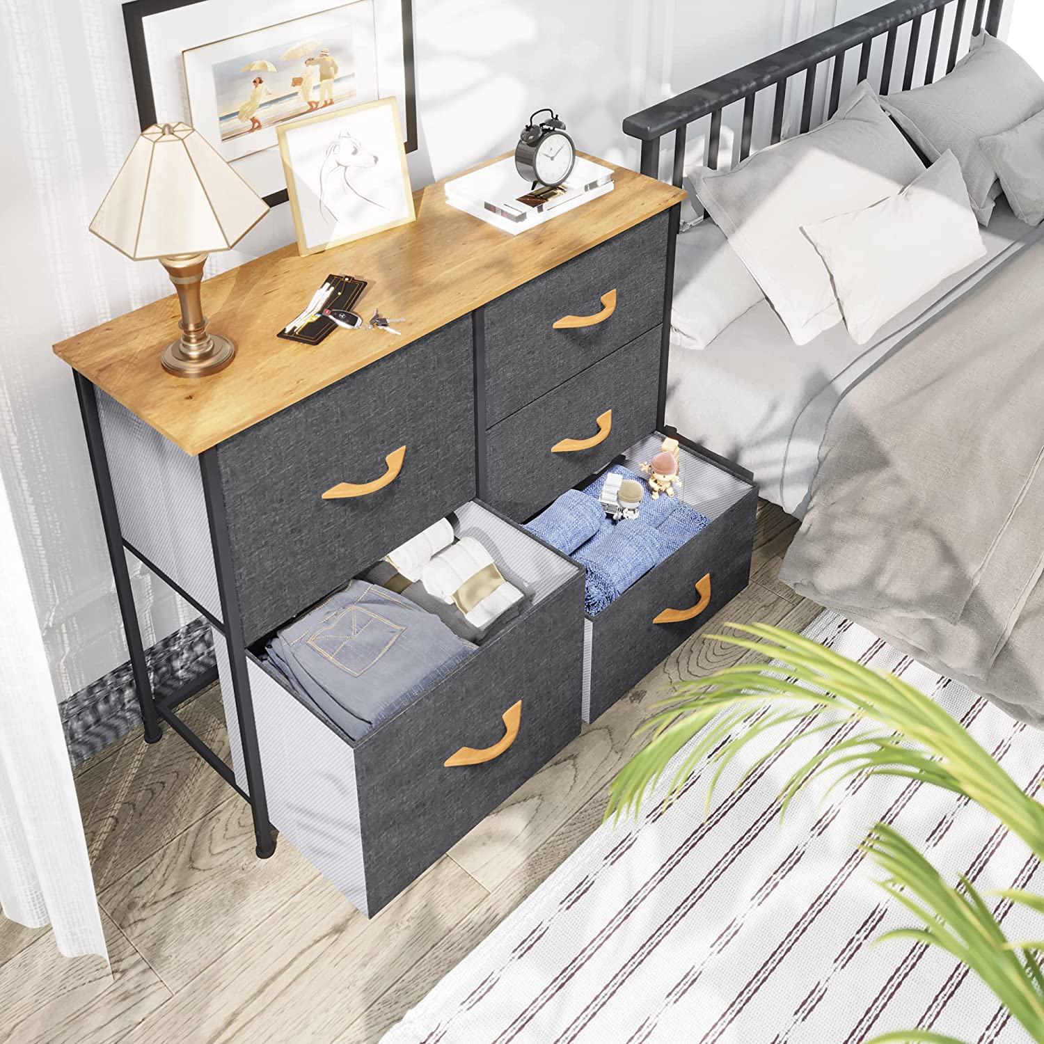YITAHOME Storage Tower with 5 Drawers - Fabric Dresser, Organizer Unit for Bedroom, Living Room, Closets & Nursery - Sturdy Steel Frame, Easy Pull Fabric Bins & Wooden Top