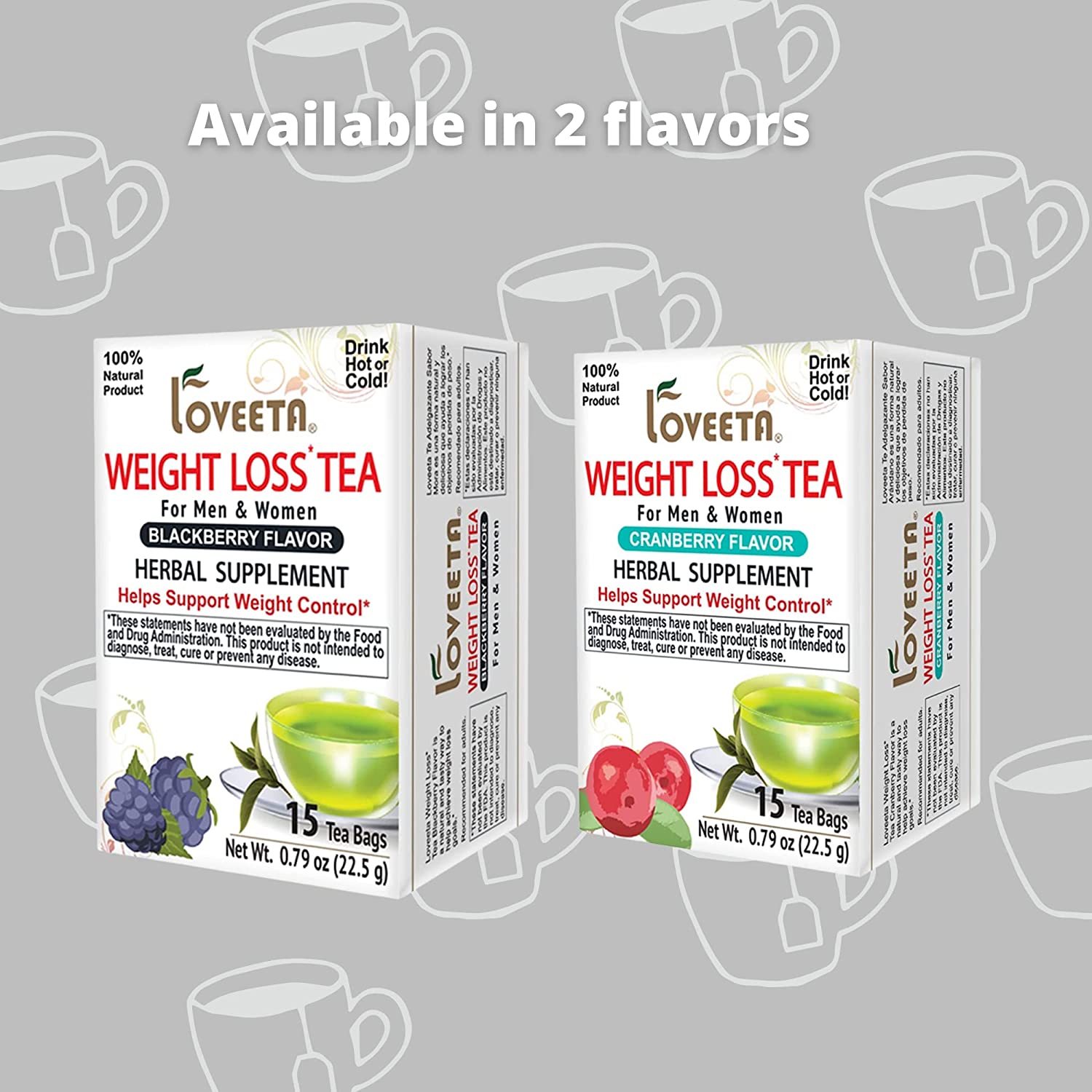 Loveeta Wellness Weight Loss Tea Blackberry - 15 Tea Bags (Gmo Free, Gluten Free, Dairy Free, Sugar Free & 100% Natural)