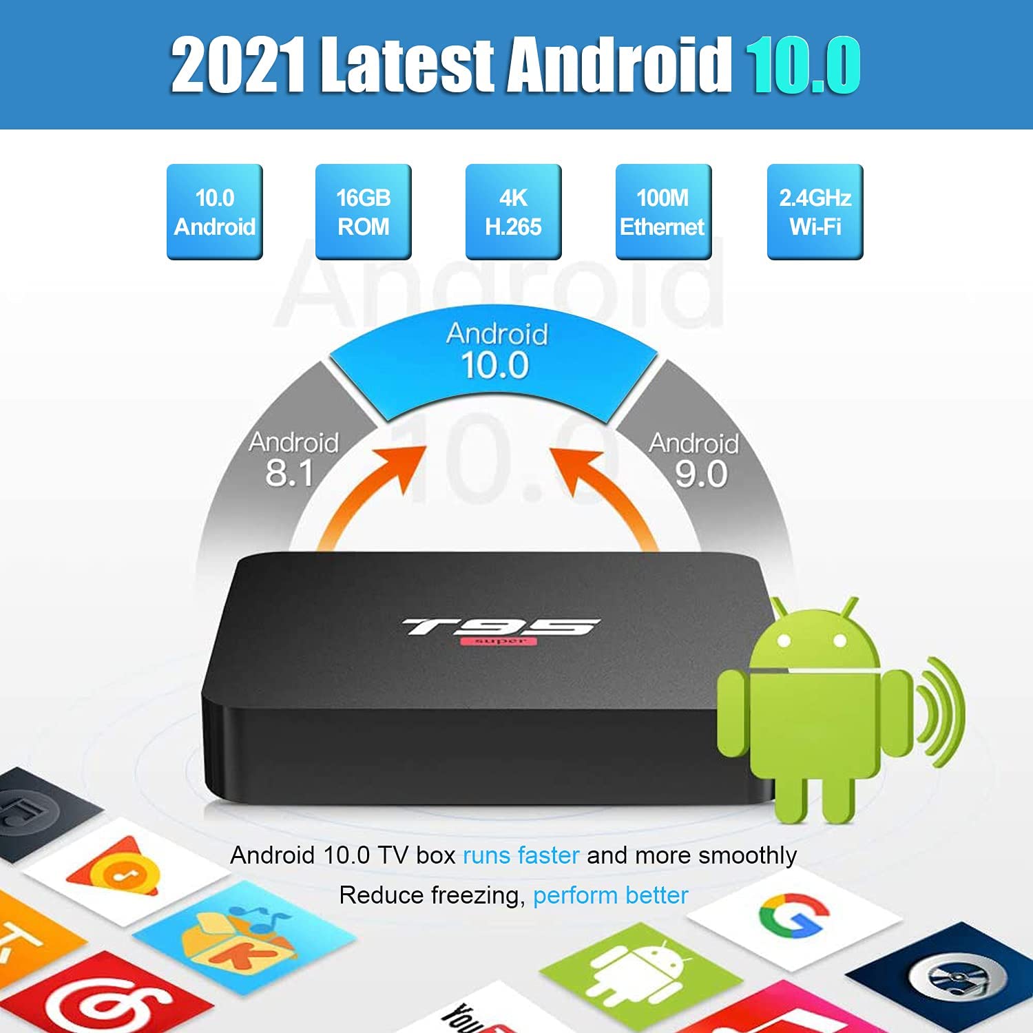 Android TV Box 10.0, T95 Super Android TV Box 2GB RAM 16GB ROM Quad-Core Media Player, Support 2.4GHz WiFi 4K H.265 3D USB 2.0, Smart TV Box Android Box for TV