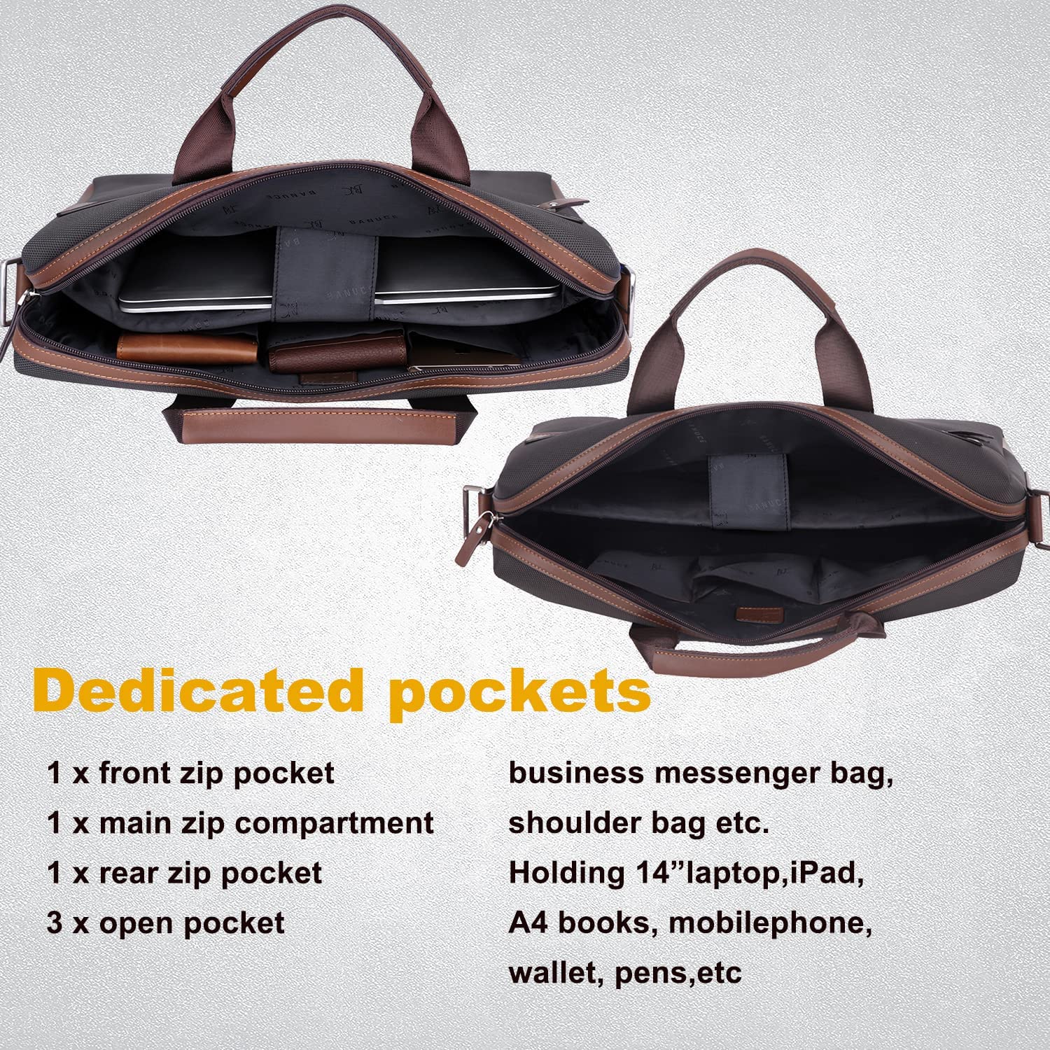 Banuce Waterproof Nylon Briefcase for Men Business Travel 14 Inch Laptop Messenger Bags Satchel Work Bag
