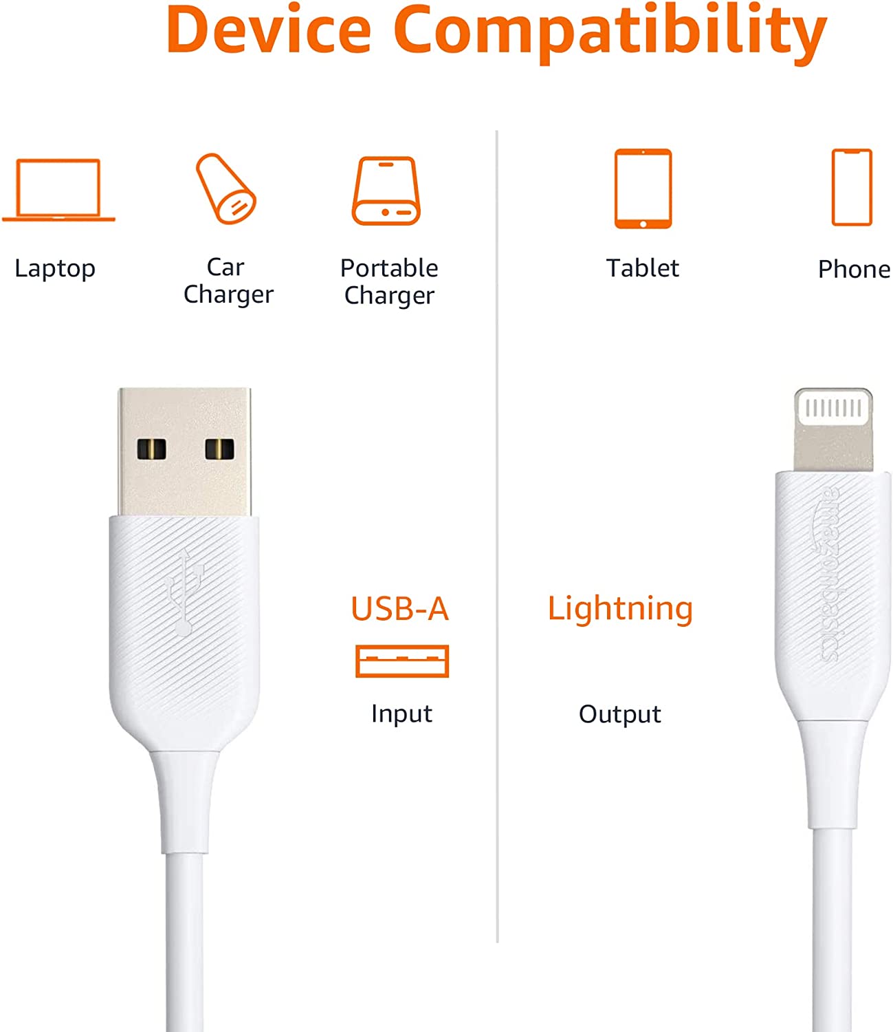 • IN THE BOX: Amazon Basics Lightning to USB-A Cable for charging and syncing devices. Comes with Apple's original C89 smart chip