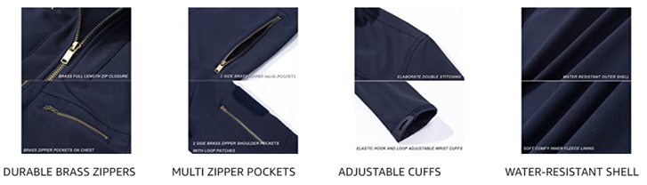 MAGCOMSEN Men's Tactical Jacket 6 Metal Zip Pockets Water Resistant Fleece Lined Softshell Winter Jacket