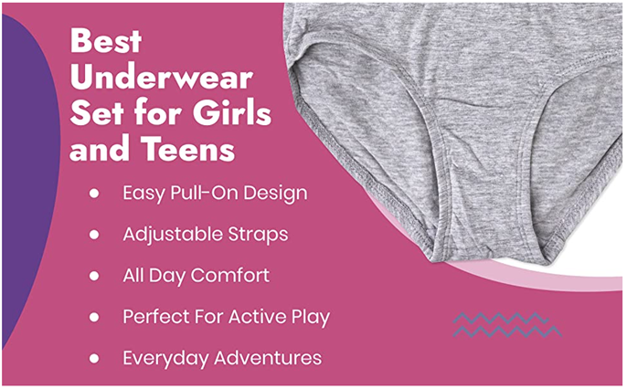 PREMIUM COTTON BLEND FOR SUPREME COMFORT & STRETCH: Our Underwear For Girls Is Made From A Super Soft Cotton Blend That Has Just The Right Amount Of Stretch From The Addition Of 5% Spandex. They Provide Light Support & Coverage For Every Activity!