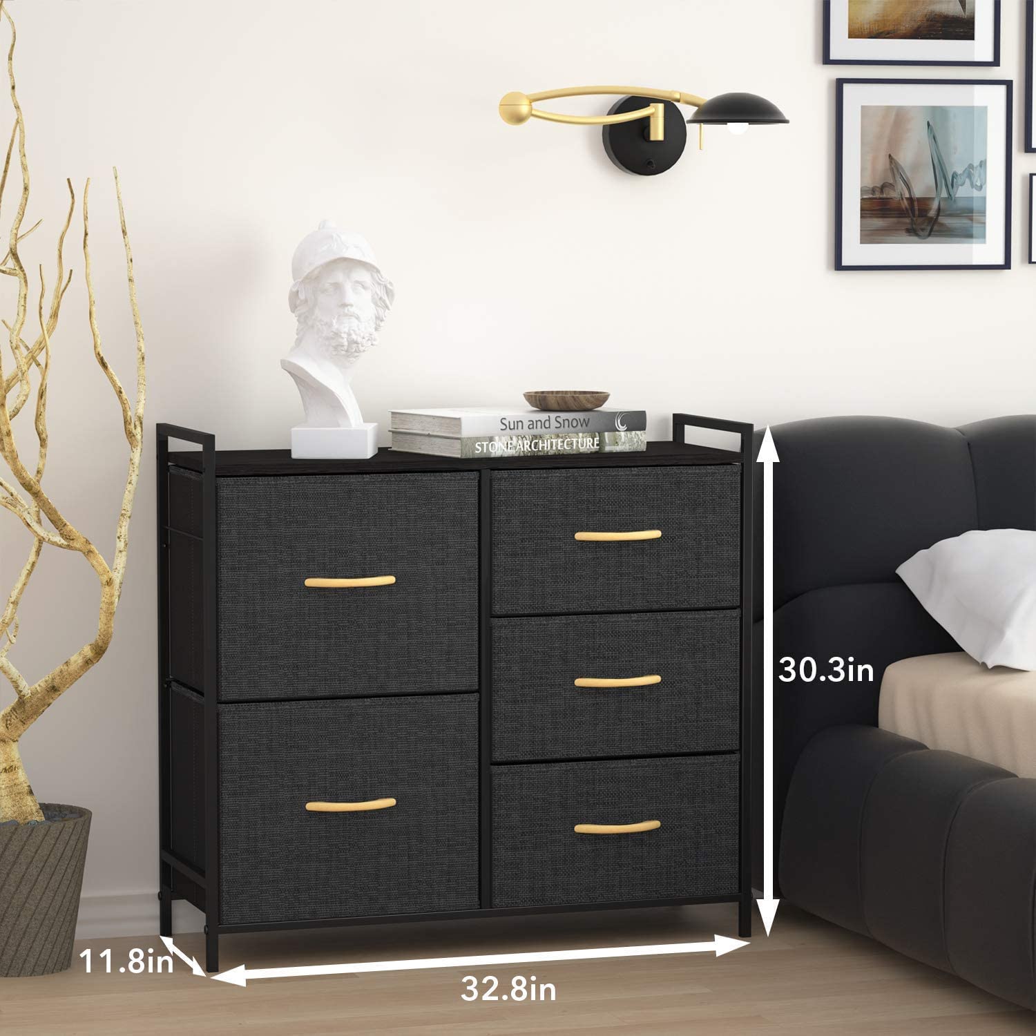 • Multifunction Cabinet: 5 Collapsible drawers include 2 sizes to satisfy your different storage needs, shelving things as you wish on top board.