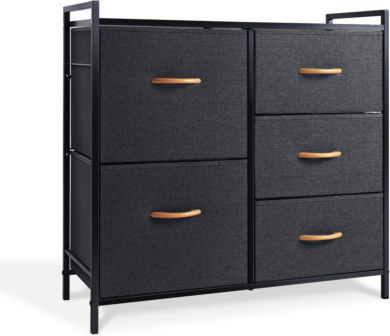 ROMOON Dresser Storage Drawer, 5 Fabric Units Organizer and Storage for Bedroom, Hallway, Entryway, Closets - Dark Gray