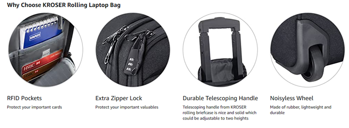 - GREAT CONVENIENCE: A well-knitted “luggage strap” is quite easy to fix the rolling laptop bag on the trolley of your luggage, making your journey and business travelling more convenient.