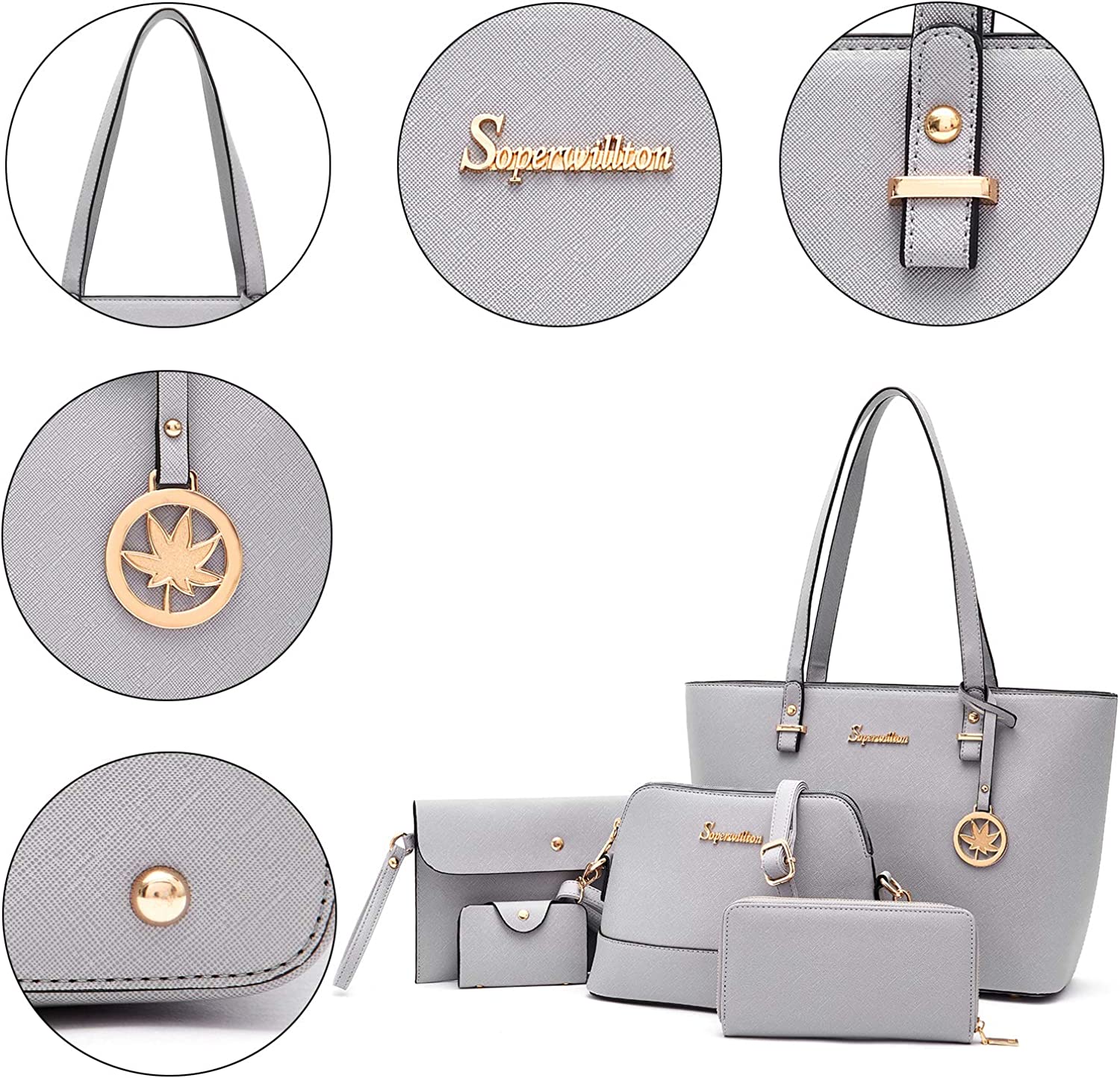 Soperwillton Handbag for Women Wallet Tote Bag Shoulder Bags Top Handle Satchel 5pcs Purse Set